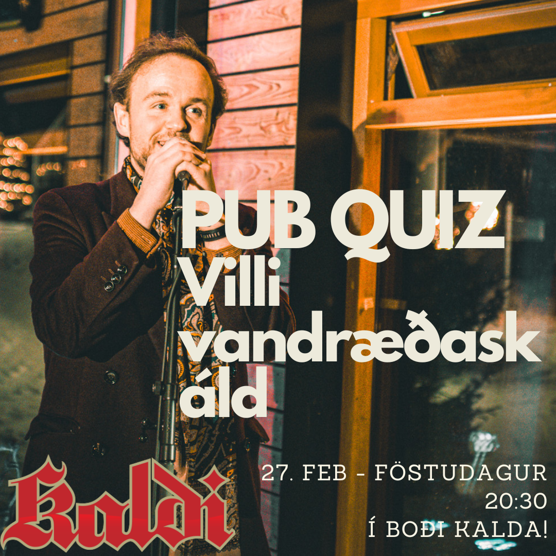 Pub Quiz | Villi Vandræðaskáld | 27. febrúar – Í boði KALDA
